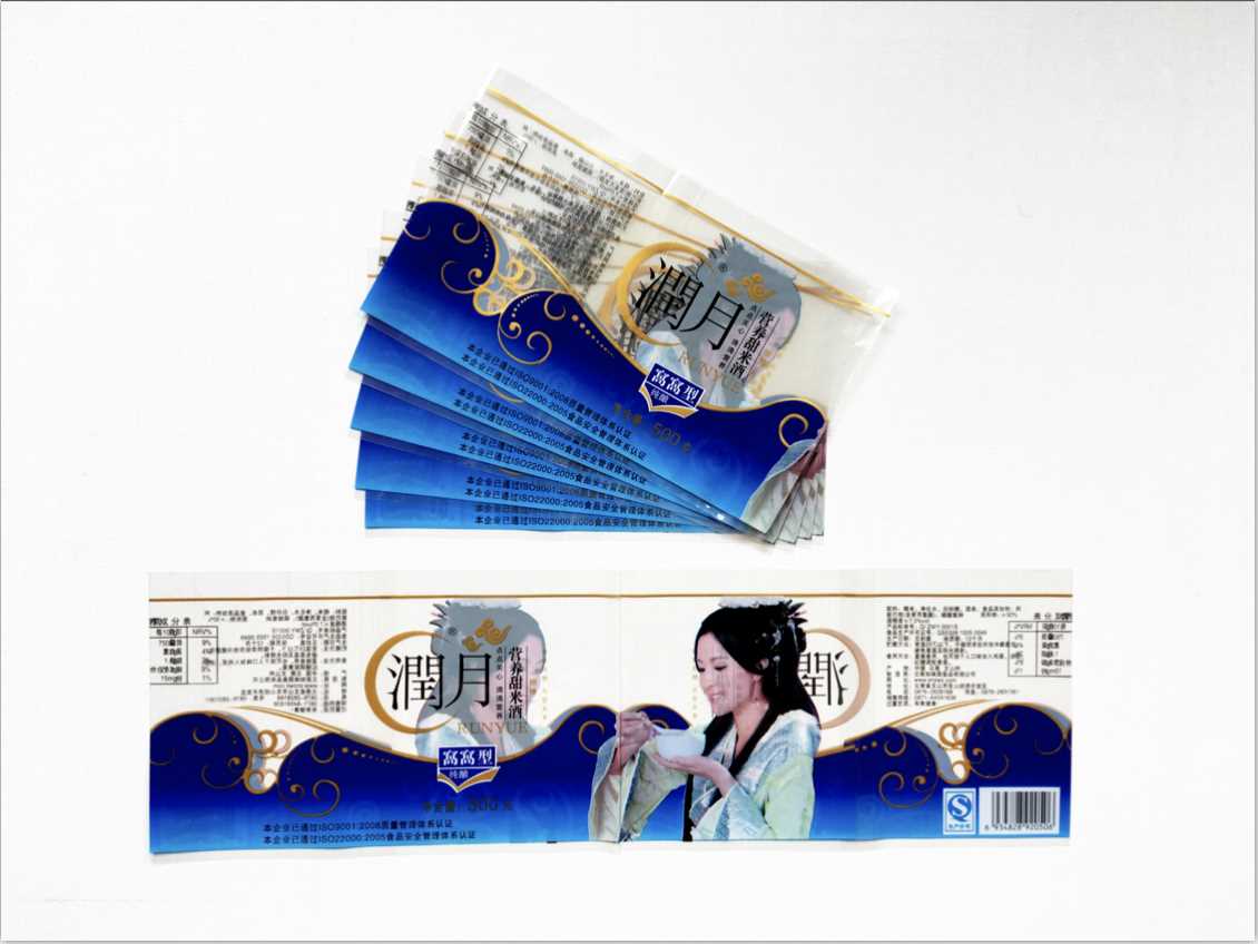 由于薄膜本身透明度高,故标签色泽鲜艳、光泽好。但因为使用时必须经过收缩,所以存在图案变形的缺点,尤其对印刷有条码标识的产品。必须经过严格的设计和印刷质量控制,否则图案变形后将引起条码质量不合格。收缩环绕标签可以采用传统的贴标设备进行贴标,贴标过程中需要使用胶黏剂和更高的温度。在收缩过程中,由于薄膜重叠部位处的胶黏剂会产生应力作用,因此采用热熔胶为佳。